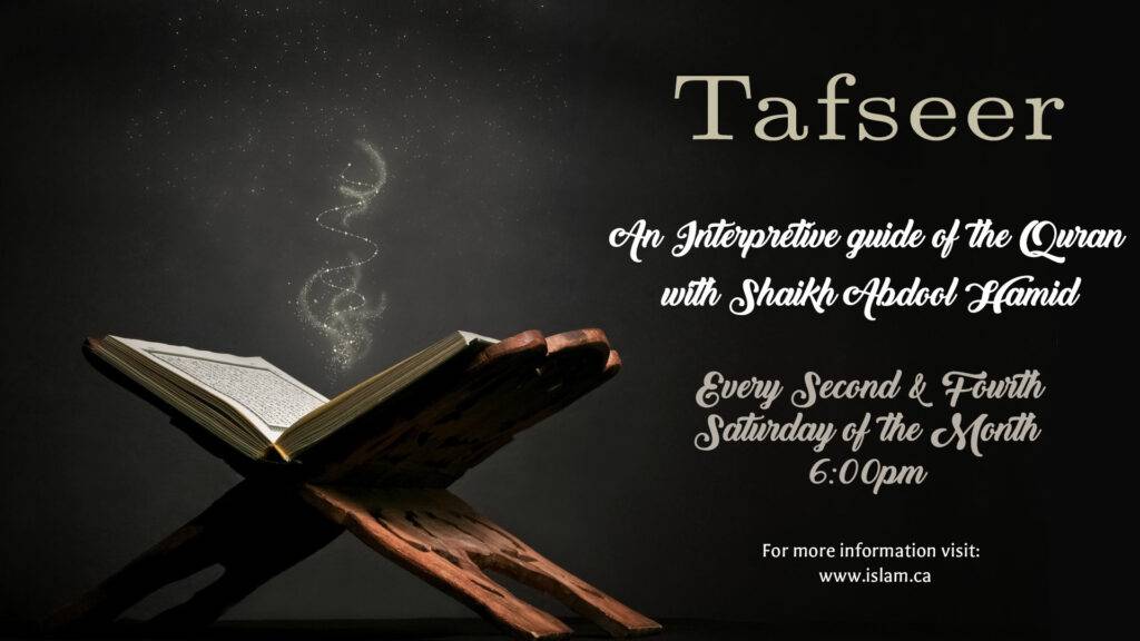 Tafseer sessions: 2nd & 4th Sat. of the month, 6 pm