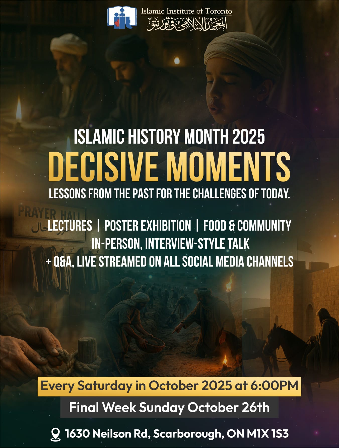 Join us every Saturday in October at the Islamic Institute of Toronto for engaging exhibitions, lectures, panel discussions, and food, exploring Islamic history’s impact on today. Keep checking this page for updates on the upcoming program’s and the guest speakers that will be featured!
