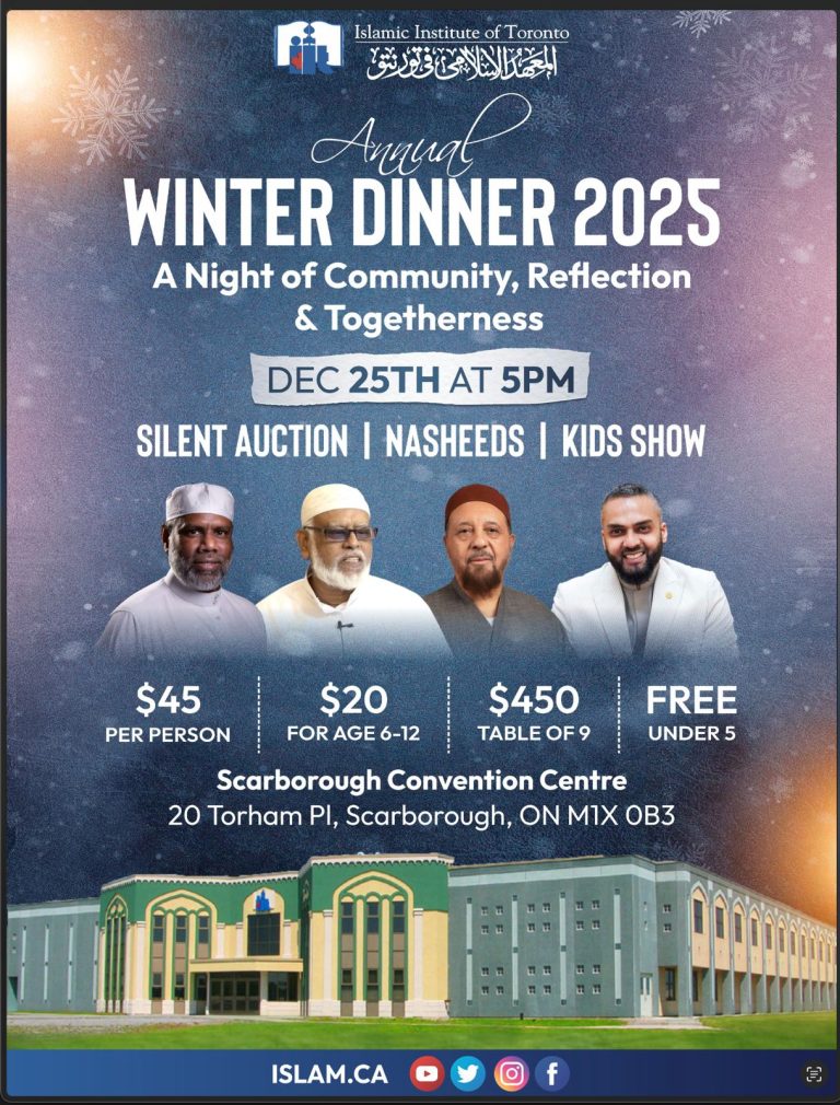Looking forward to a memorable evening at the Annual Winter Dinner with keynote speaker Shaikh Junaid A. Bhaiyat, where community, elegance, and inspiration come together. Celebrate the year with a formal event featuring a delicious dinner with friends and family.