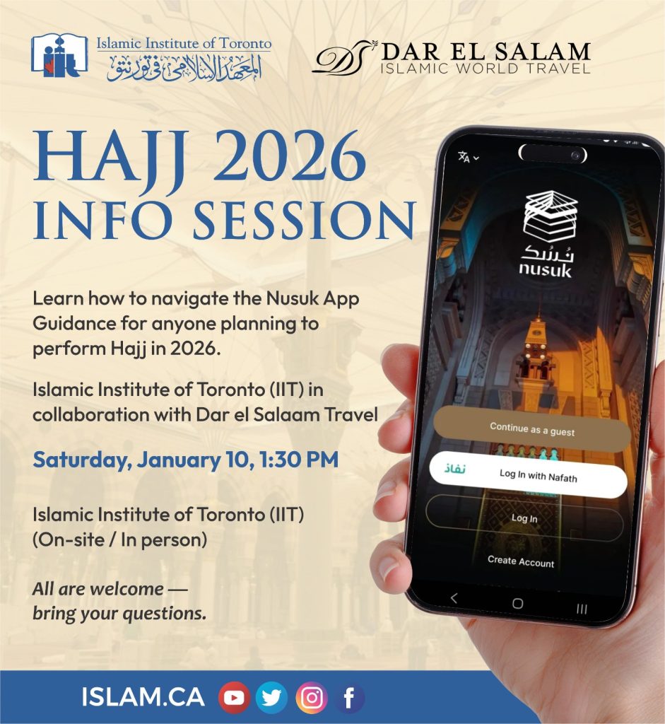 We will be collaborating with Dar el Salaam Travel to hold an information session to give guidance on how to navigate the Nusuk App (Android, iOS) for anyone thinking about performing Hajj in 2026.